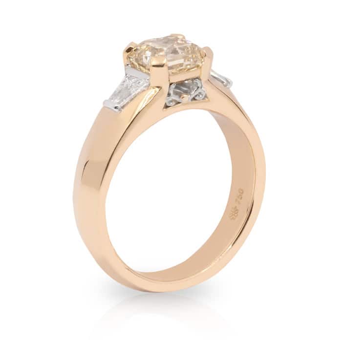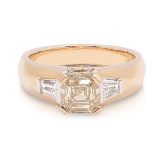 2.01ct Asscher cut C2/VVS2 centre Diamond flanked by a pair of baguette F/VS Diamonds.
