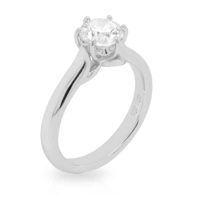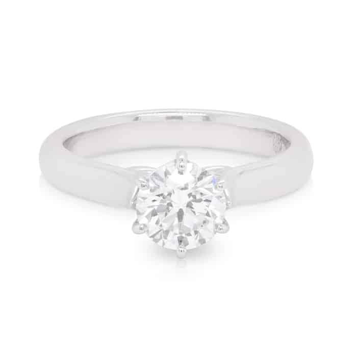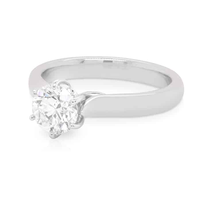 0.91ct G/Si1 GIA Round Brilliant Diamond 6 Claw Solitaire Engagement Ring