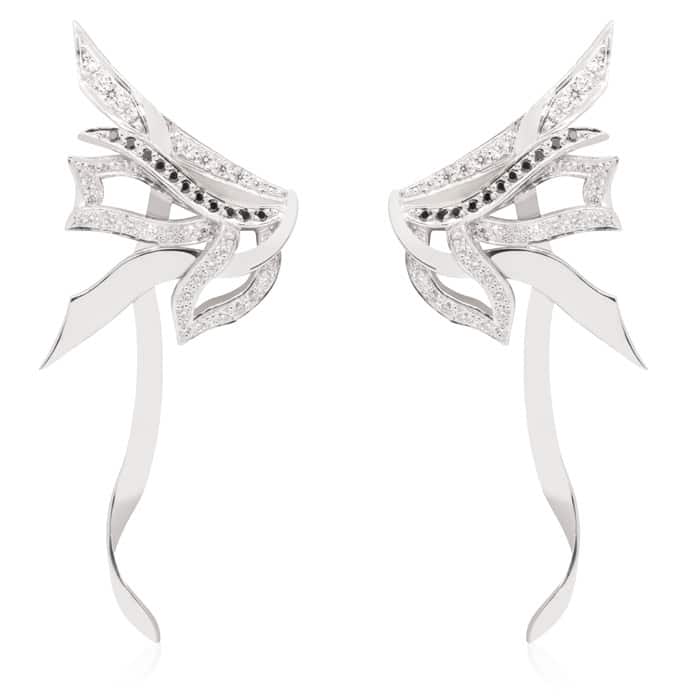 ‘Amelia’ White and Black Diamond Set Wing style Drop Earrings