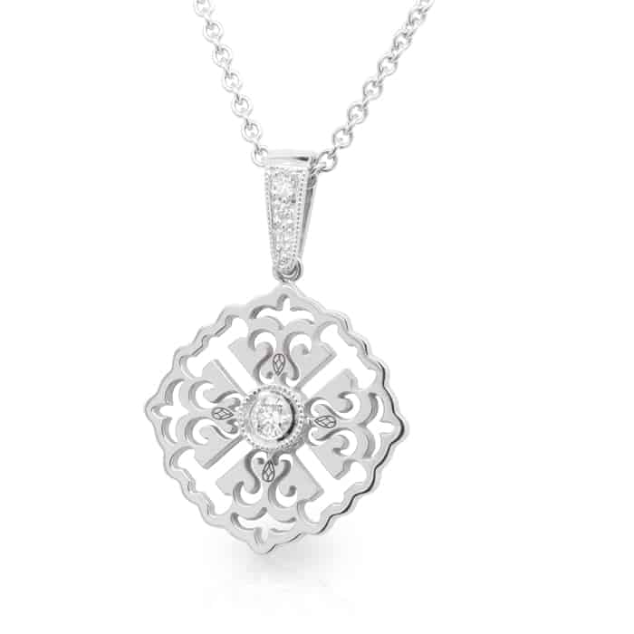 Art Deco Crest with 0.12ct Round Brilliant Diamond Centre and Diamond Bale Pendant