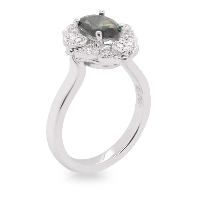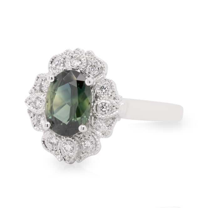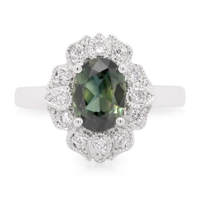 Cushion Cut 1.14ct Australian Parti Sapphire with Art Deco Diamond Halo
