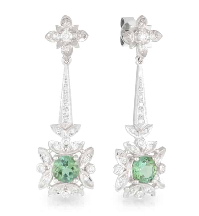 Green Tourmaline and Diamond Flower Drop Earrings