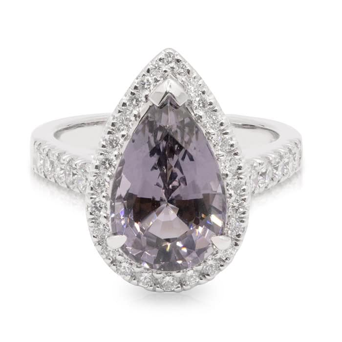 Grey Spinel Pear shaped 4.22ct Grey Spinel and Diamond Halo Ring