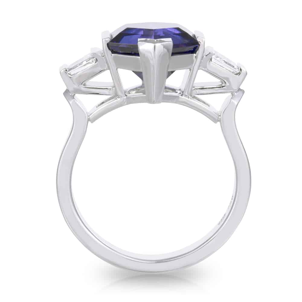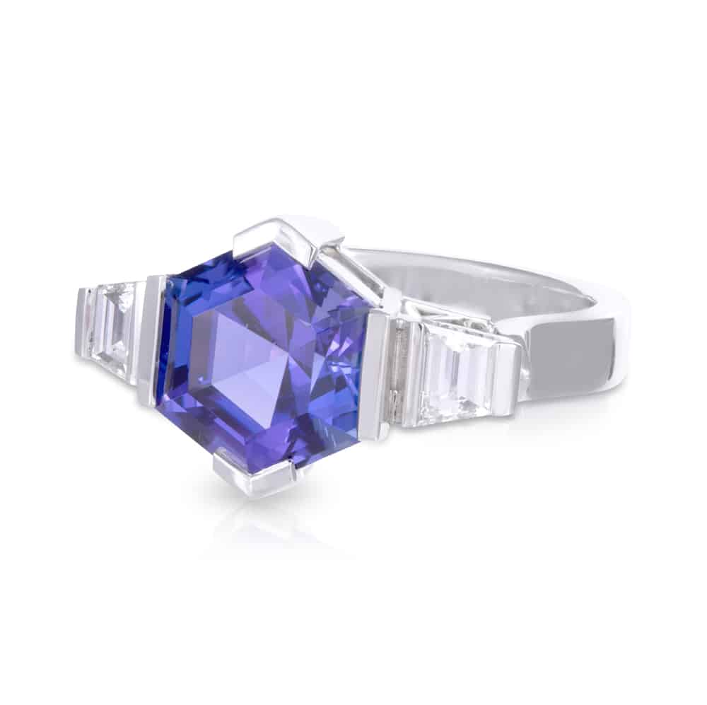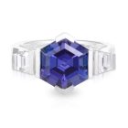 4.55ct Hexagon cut Tanzanite with 2=0.56ct Trapezoid cut diamond shoulders Dress Ring