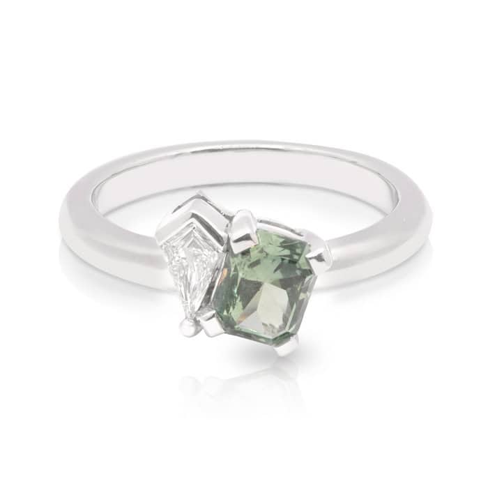 Toi Et Moi 1.14ct Montana Sapphire and Kite 0.14ct Shaped Ring