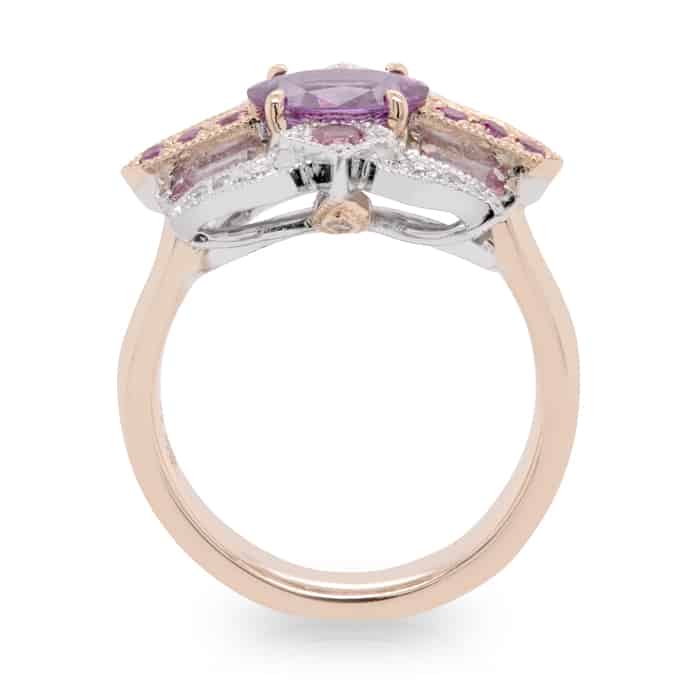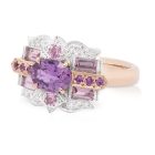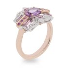 18ct White/Rose Gold Oval Purple Sapphire, Pink Spinel, Pink Sapphires and Diamond Ring. TDW 0.10ct.