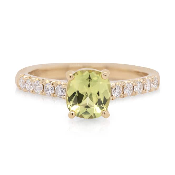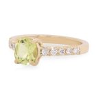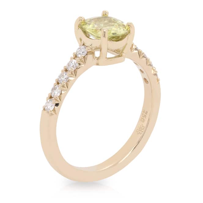 1.07ct Cushion Cut Yellow Sapphire and Diamond Shoulder Engagement Ring.