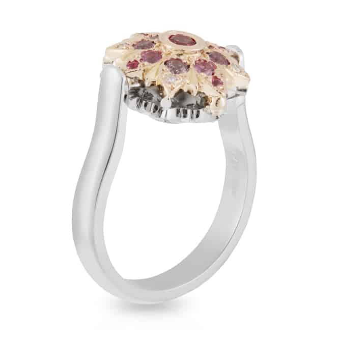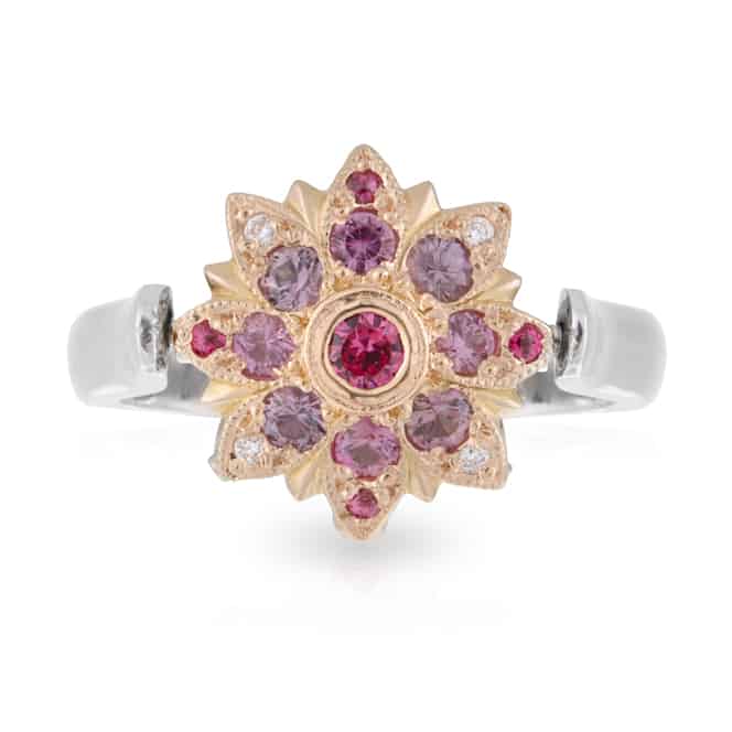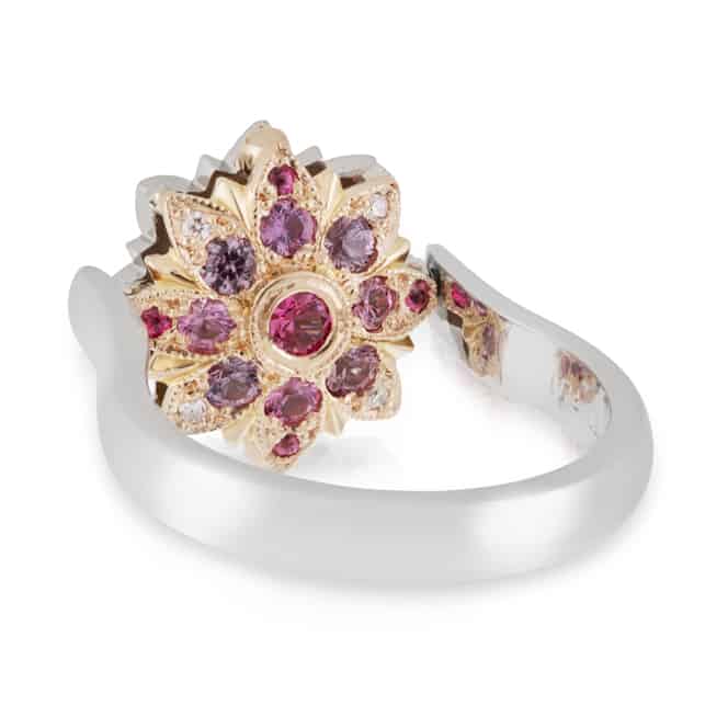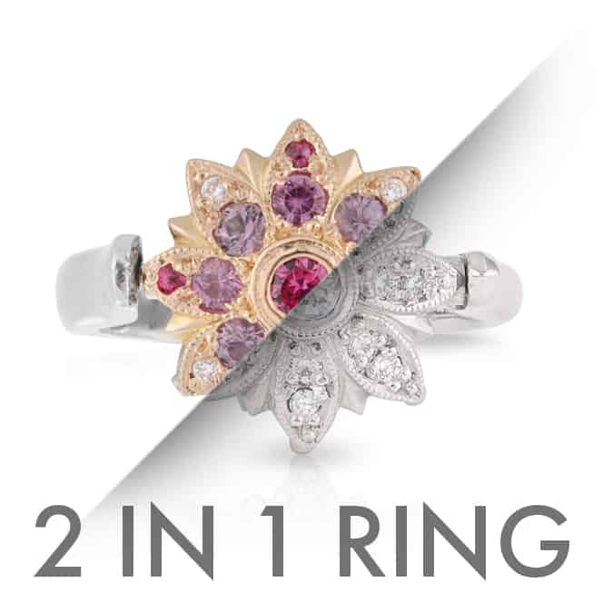 2-in-1 Spinning Flower Ring with Pink/Purple Spinels and Diamonds