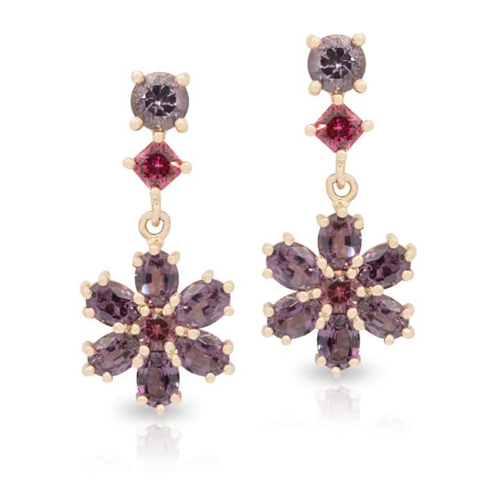 9ct Rose Gold Purple and Pink Spinel Flower Drop Earrings