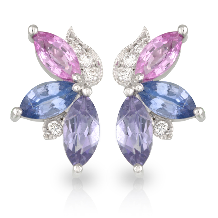 Angelique Astrid Earrings – 18ct White Gold Pink/Purple Sapphire, Tanzanite and Diamond