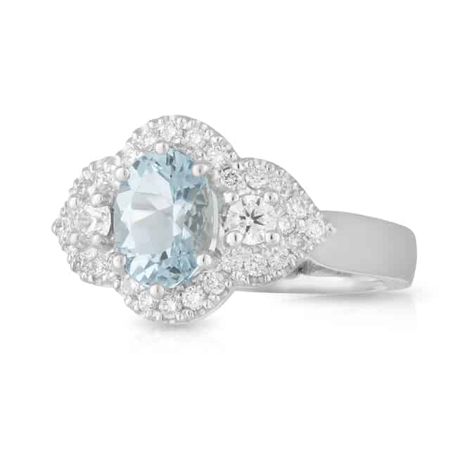 Oval 1.08ct Aquamarine & Diamond Ring.