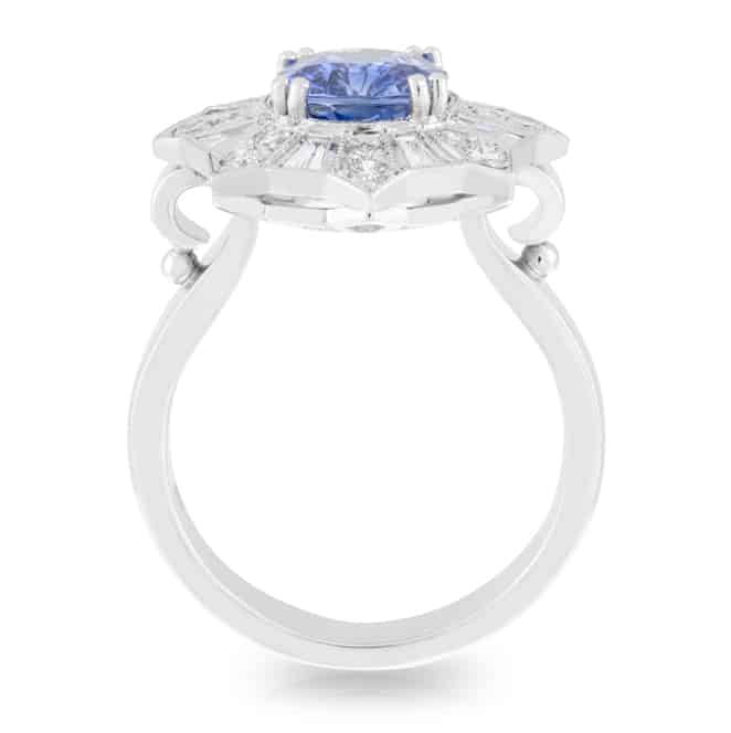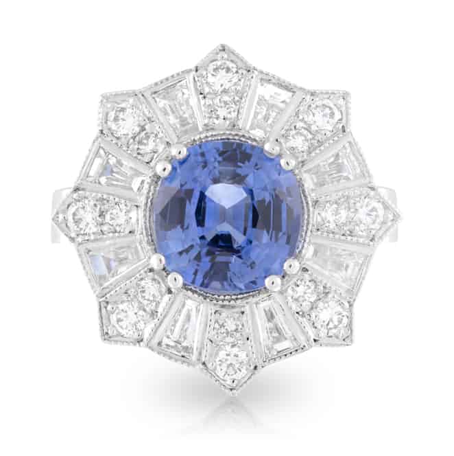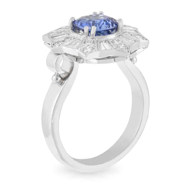 Blue Ceylon Sapphire and Art Deco Diamond Fireworks Engagement Ring
