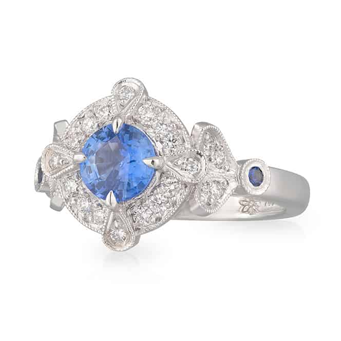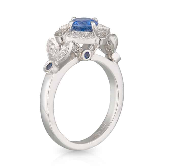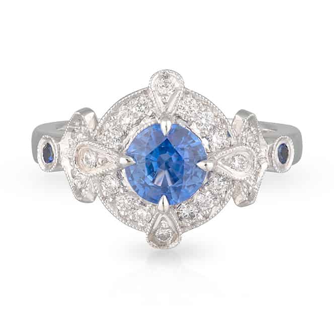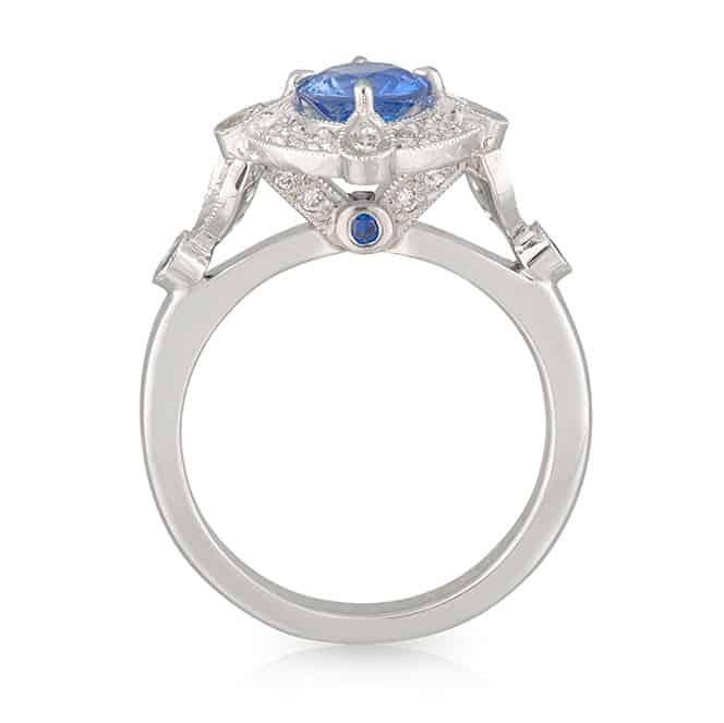 Ceylon Blue Sapphire Diamond Art Deco Engagement Ring