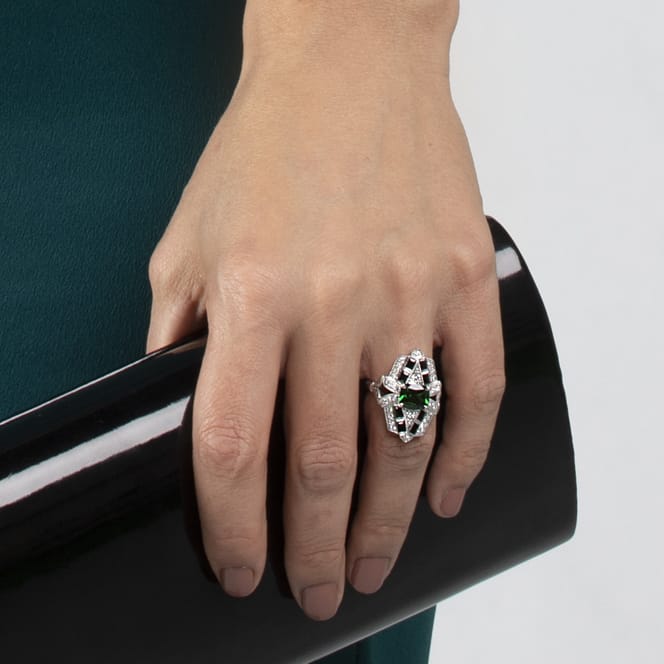 Chrome Tourmaline, Black Spinel & Diamond Dress Ring