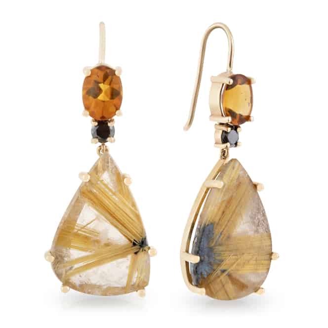 Citrine, Black Diamond and Rutilated Quartz Drop Earrings