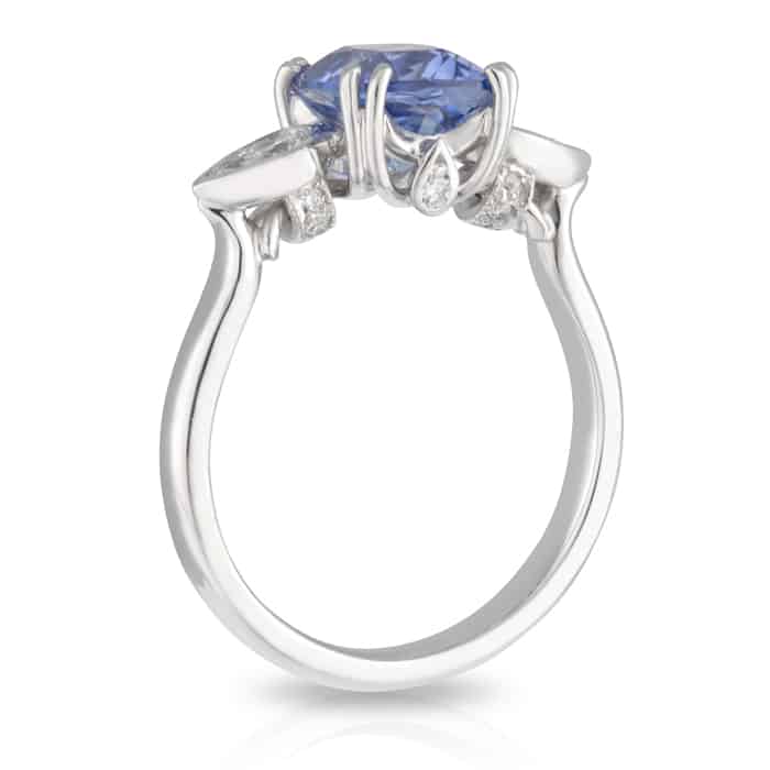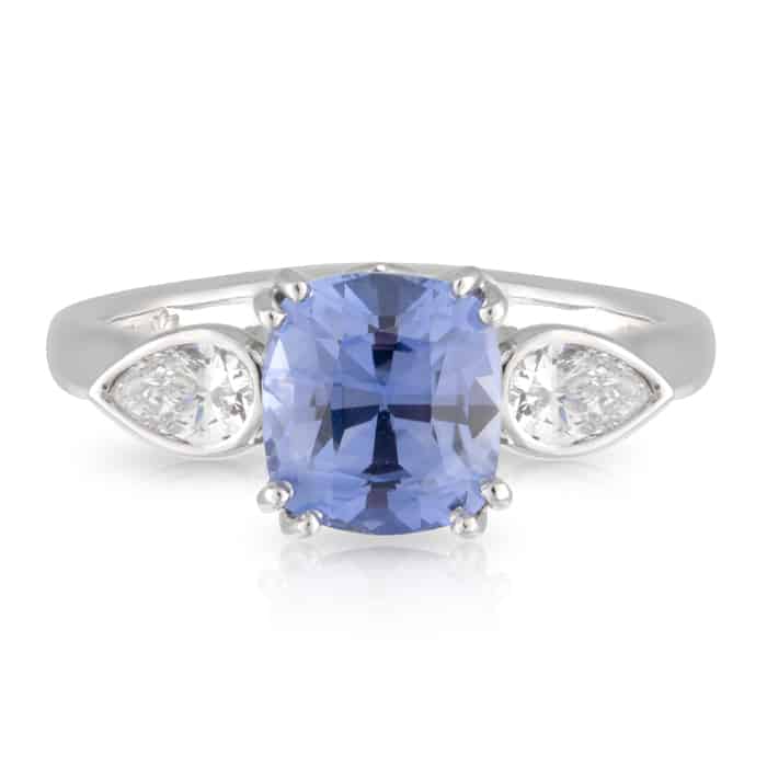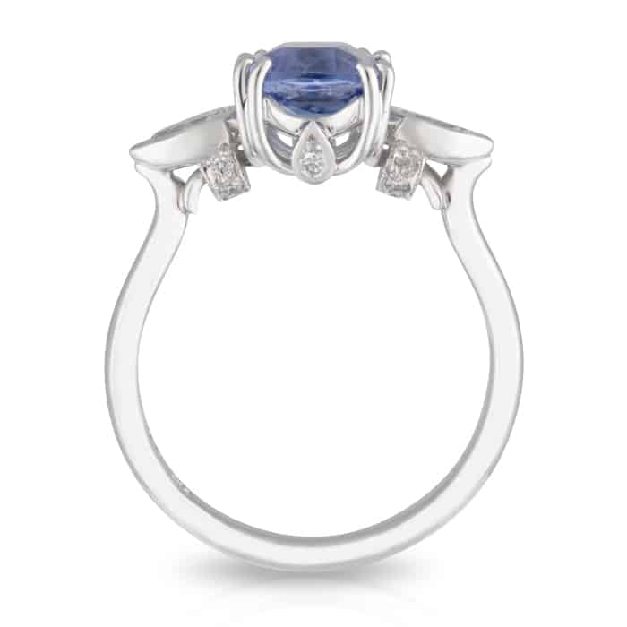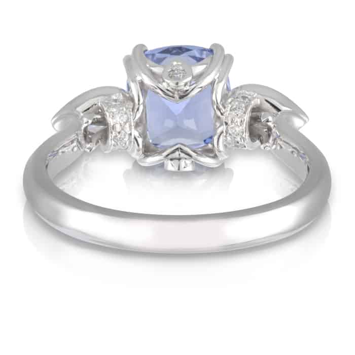 Cushion Cut Blue Ceylon Sapphire & Diamond Engagement Ring