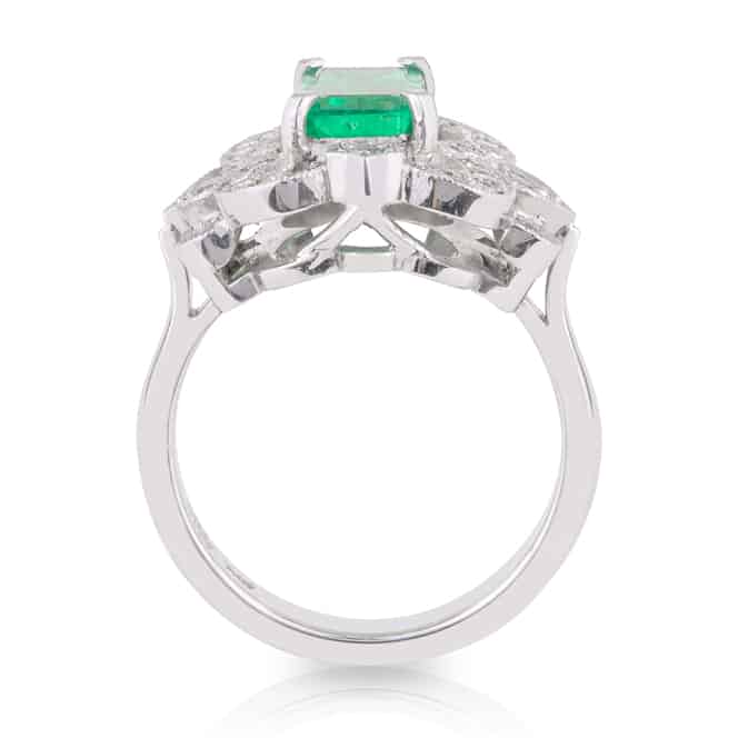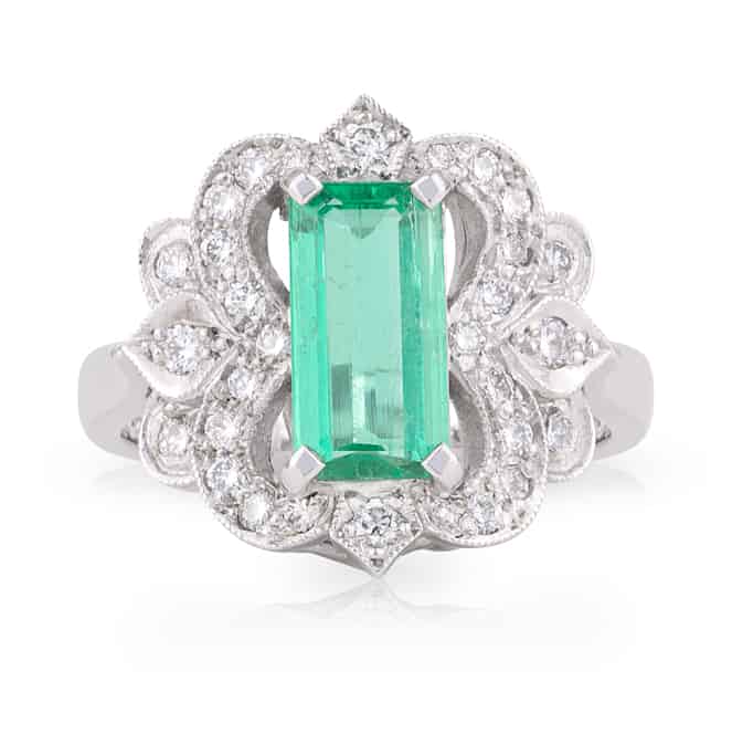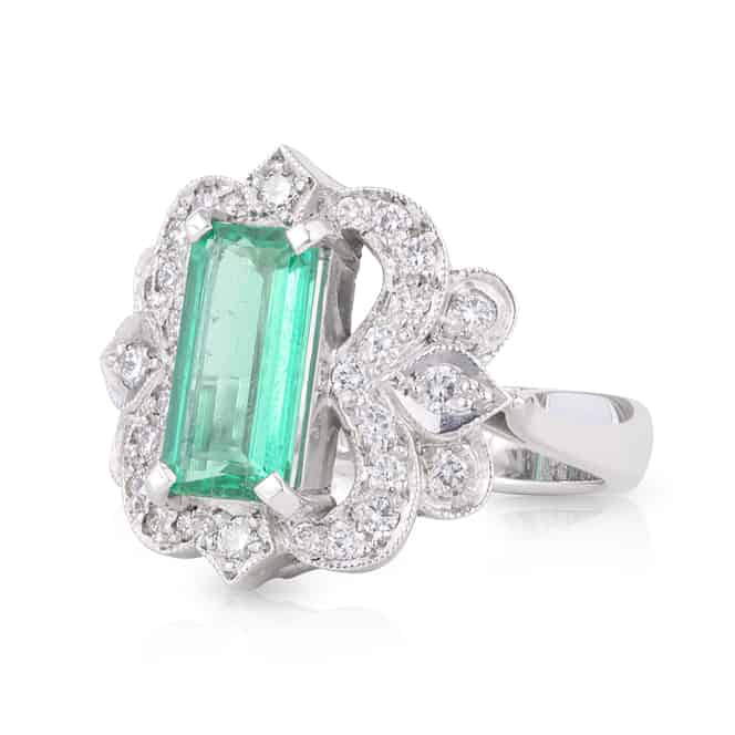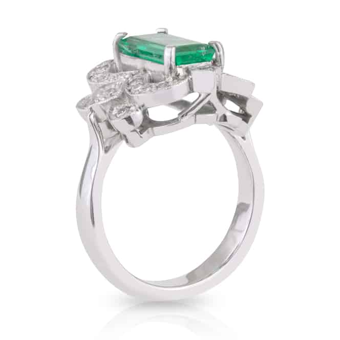 1.84ct Long Emerald Cut Emerald & Art Deco Diamond Dress Ring