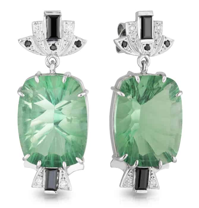 Fluorite, Black Spinel and Diamond Art Deco Earrings