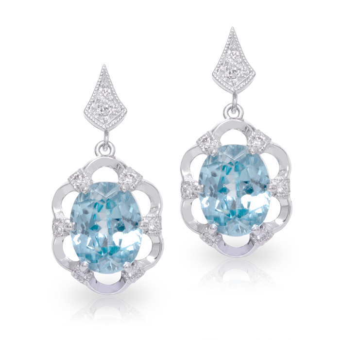 Oval 3.07ct Blue Zircon and Diamond Halo with Diamond Top Drop Earrings.