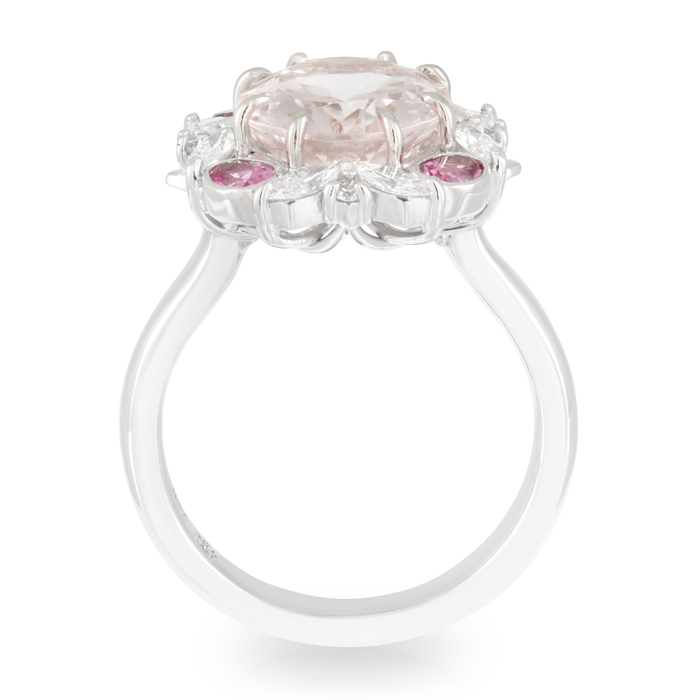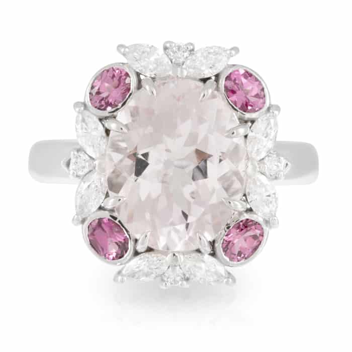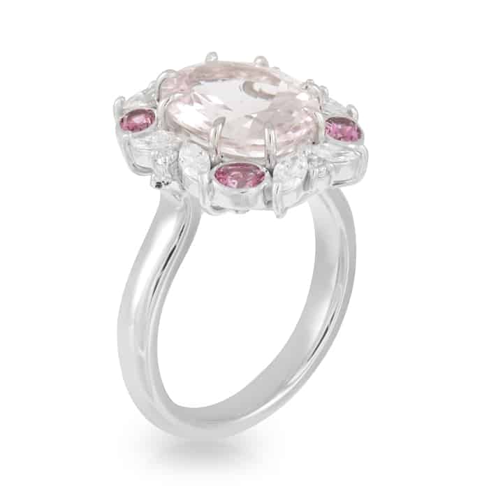 Oval 4.00ct Morganite with an Art Deco Hot Pink Spinels and Diamond Halo Dress Ring
