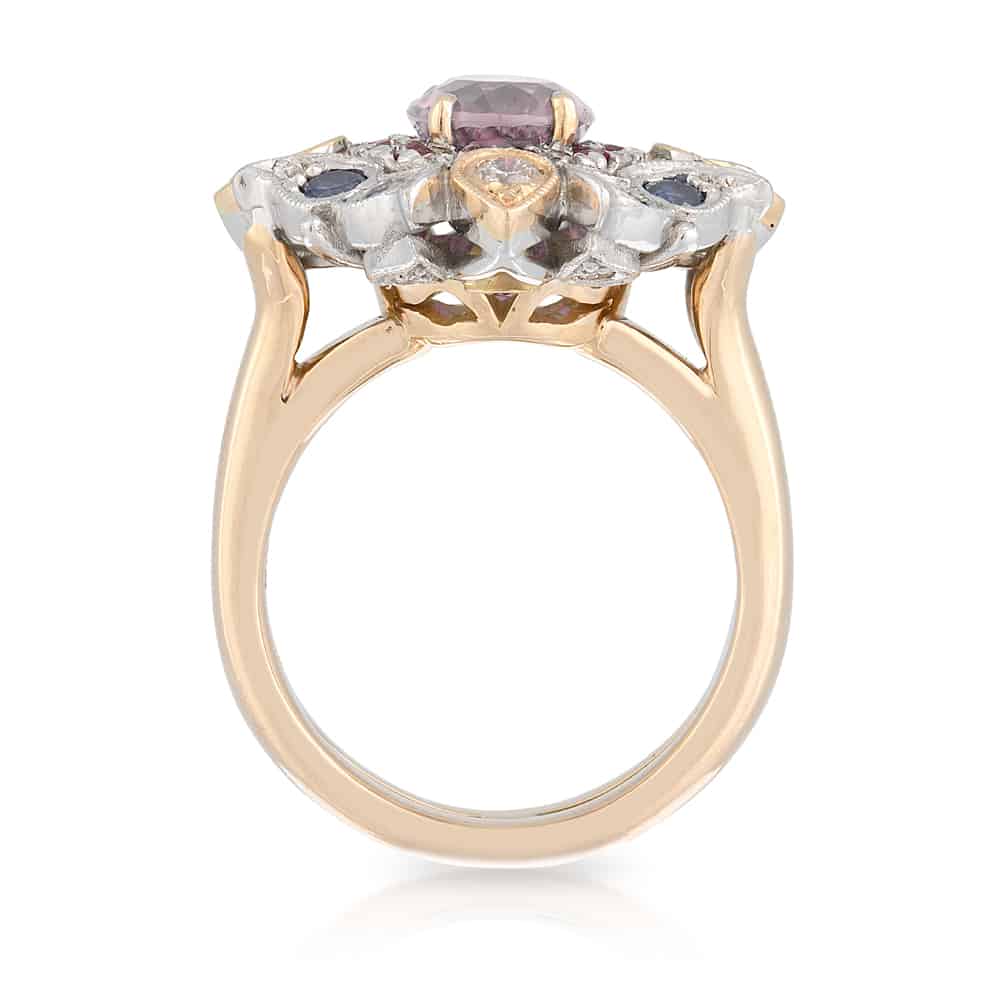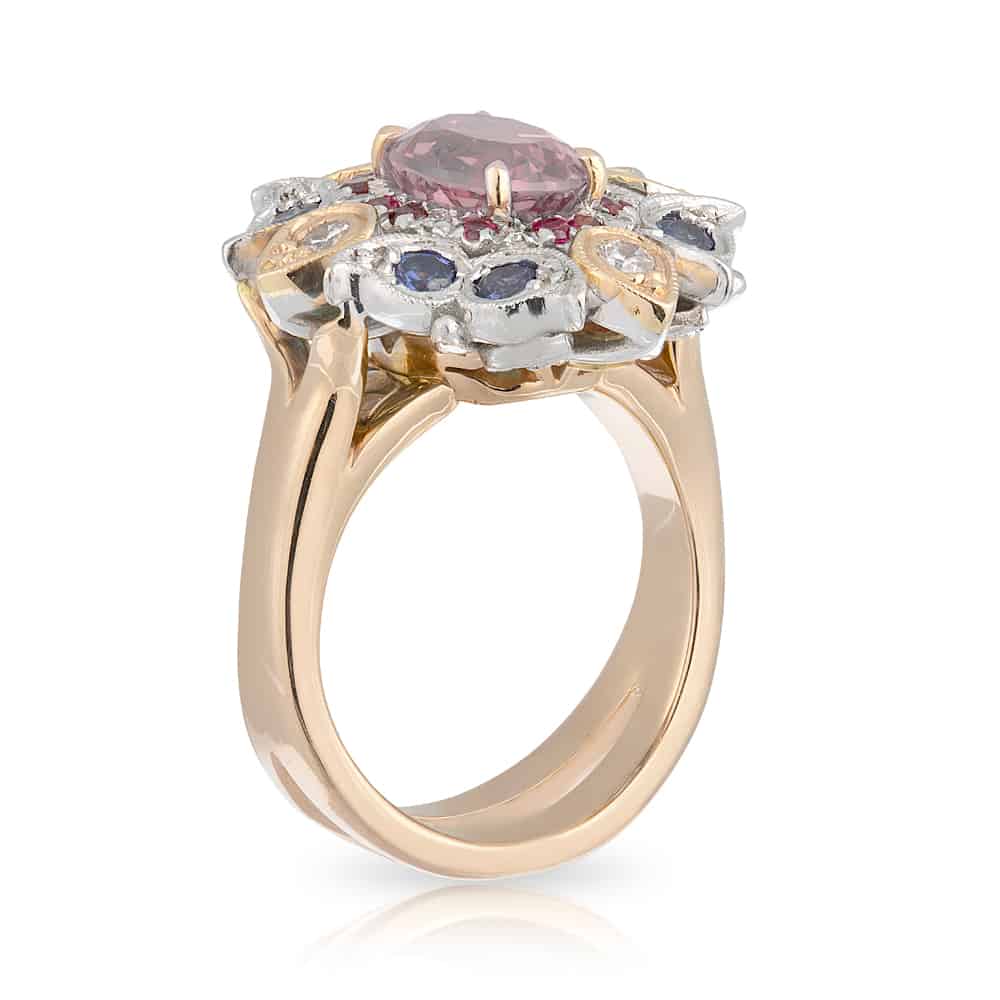 Oval Morganite, Purple/Blue Sapphire, Pink Spinels and Diamond Dress Ring