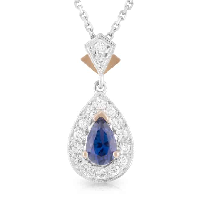 Pear shaped Blue Ceylon Sapphire and Diamond Halo Pendant