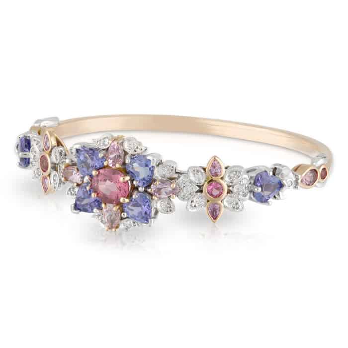 Bangle with Pink Spinel, Tanzanites, Pink Sapphires and Diamonds