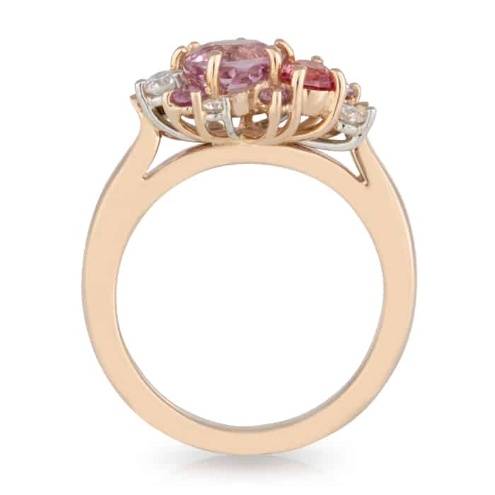 ‘Bubble’ style Pink Spinel and Diamond Cluster Ring.