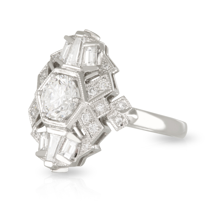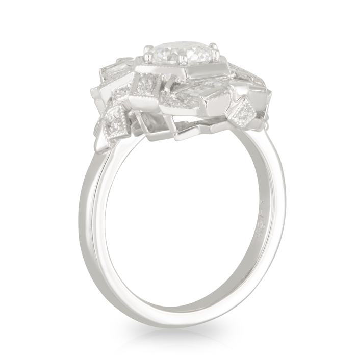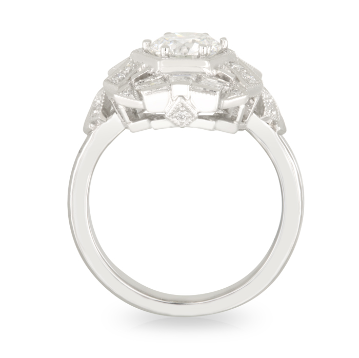 Diamond Engagement ring with GIA 1.16ct Round Brilliant Centre and a Geometric Diamond Halo