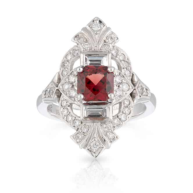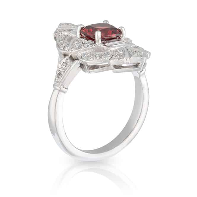 1.14ct Red Spinel & Diamond Engagement Ring