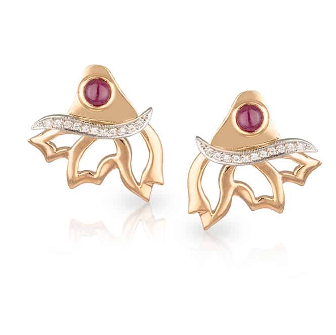 Diamond and Cabochon Cut Ruby Angel Wing Transitional Earrings