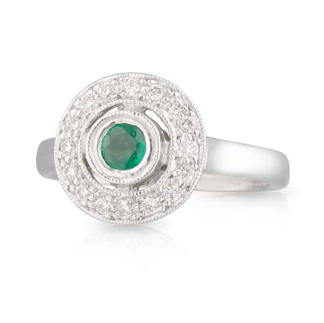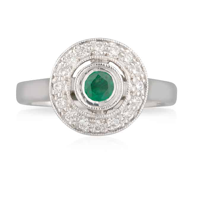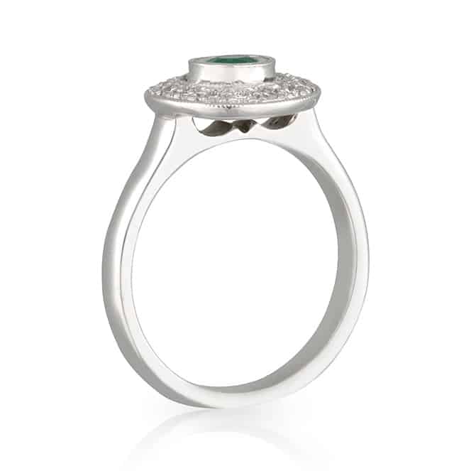 Green Emerald Diamond Halo Dress Ring