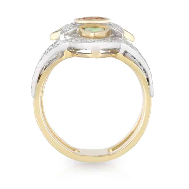 Orange Sapphire, Tsavorite Garnet & Diamond Ring