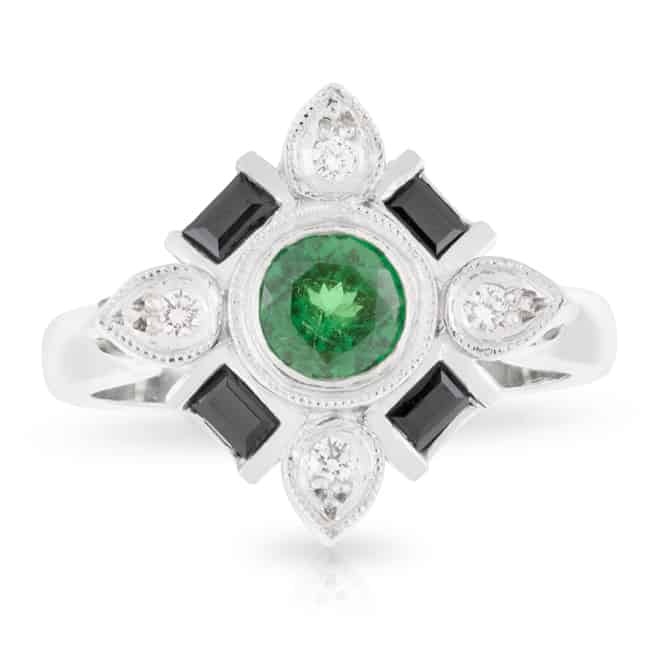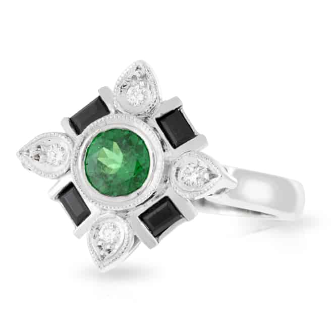 Tsavorite Garnet, Black Spinel and Diamond Dress Ring