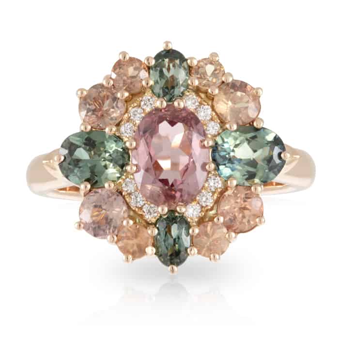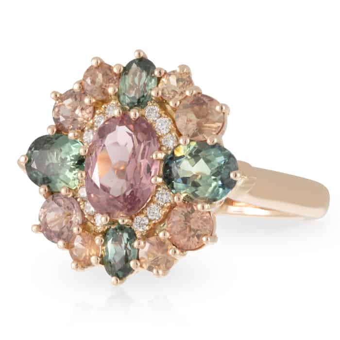 ‘Willowbrook’ style ring with Spinels, Umba/Parti Sapphires and Diamonds